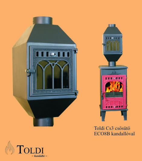 TOLDI CSS3-150 öNTVéNYAJTóS CSőSüTő éS HőDOBPraktikus mert a kiáramló füst hője melegíti a sütőt , felfűtéskor extra teljesítményt ad a forró felület ~ 2kWA képen látható módon csatlakoztatni kell a kálya, kandalló füstcső csonkjára. A kiáramló még forró füst/levegő felmelegíti a sütő-teret, amiben krumplit, hurkát egyebet süthet. A termék így hődobként és sütőként is jól funkcionál. MéRETEK: -Füstcső csatlakozás: 150mm-Külső méret (Mag x szél x mély / cm ) : 64 x 29 x 33-Sütőtér mérete :(Mag x szél x mély / cm ) : 24 x 23 x 26ANYAGA:-2mm es acéllemez oldalak-öntvény ajtó